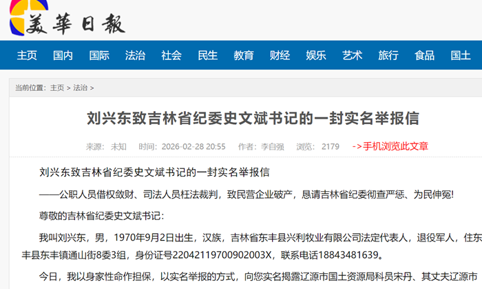 刘兴东致吉林省纪委史文斌书记的一封实名举报信