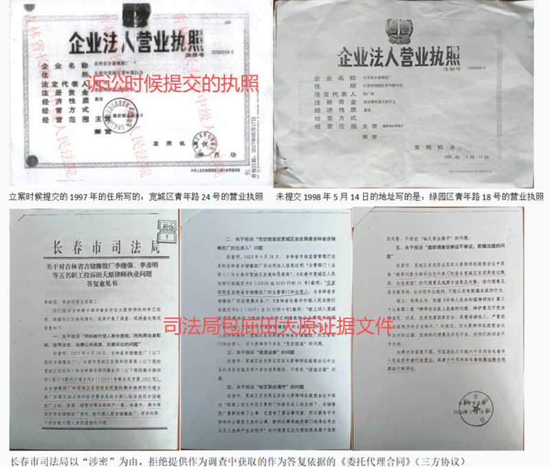 2019年6月,宽城区发改局与省律师协会会长田大原签订《委托代理协议》,形成“官律合谋”,共同针对吉储橡胶厂职工提起诉讼,标志着这起虚假诉讼案的正式启动。