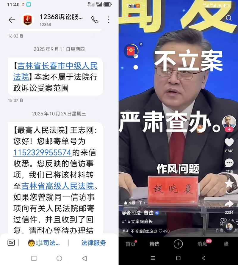 德惠王志刚举报长春市中级法院不予行政诉讼立案违法